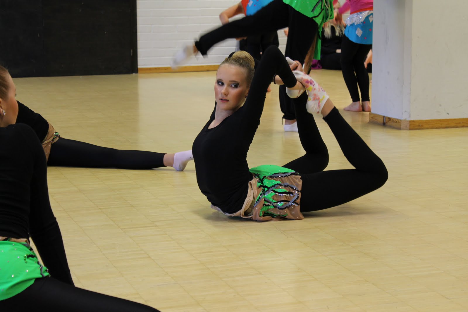 Heräsimme lauantai aamuna jännittyneinä omenahotellista ja aloimme reippaina valmistautumaan tulevaan koitokseen. Meidän täytyi laittaa nutturat ja meikit jo harjoituksiin, sillä harkkasuorituksen ja kisasuorituksen välillä oli vain pari tuntia... Osa oli hieman nopeampaa porukkaa, mutta lopulta kaikki saivat itsensä ainakin johonkin kuntoon:--D